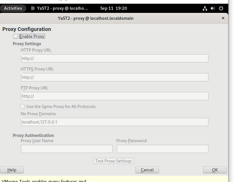 13. sudo nano /etc/sysconfig/proxy 입력하여